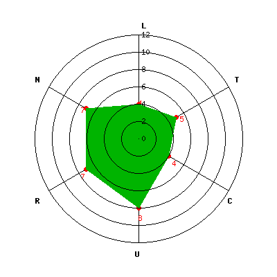 L: 4; T: 5; C: 4; U: 8; R: 7; N: 7;
