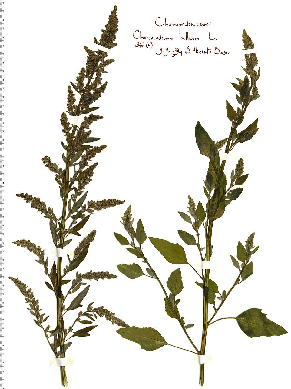 Sottospecie e/o varietà: Chenopodium album L. ha una tassonomia molto complessa. Alcuni autori suddividono la specie in diverse sottospecie, ma è molto difficile distinguerle. Flora Helvetica riporta la sottospecie striatum (Krasan) Murray (= Chenopodium strictum Roth) che si distingue per avere i glomeruli verde oliva non farinosi, per il fusto striato di rosso, per le foglie ellittiche od ovali, con bordi quasi paralleli, senza lobi né denti ben marcati, spesso orlate di rosso.
