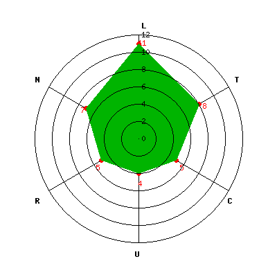L: 11; T: 8; C: 5; U: 4; R: 5; N: 7;