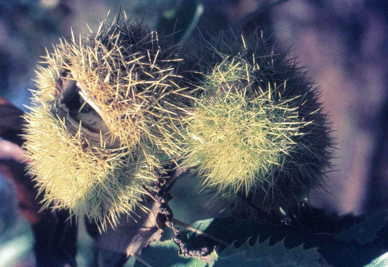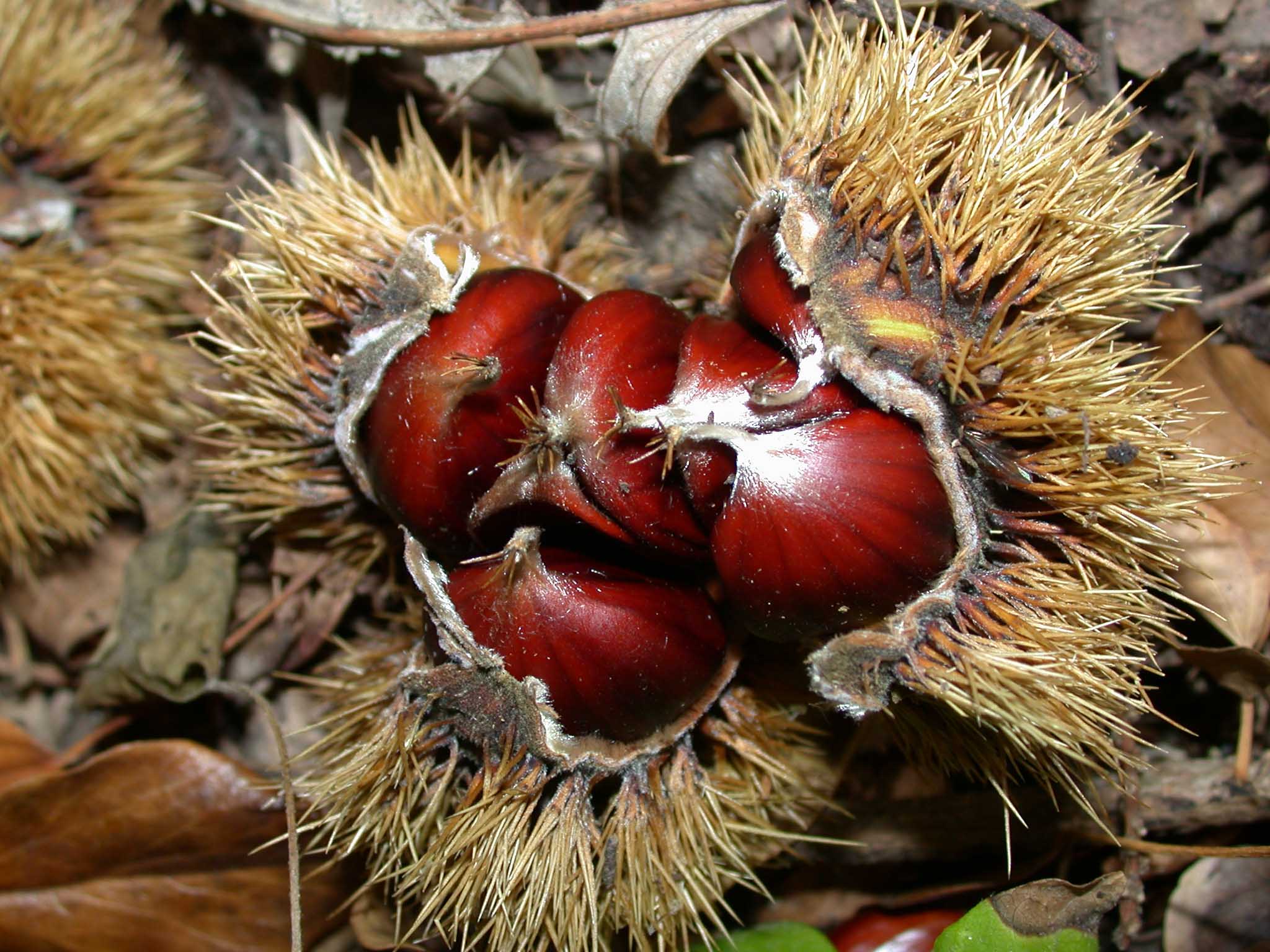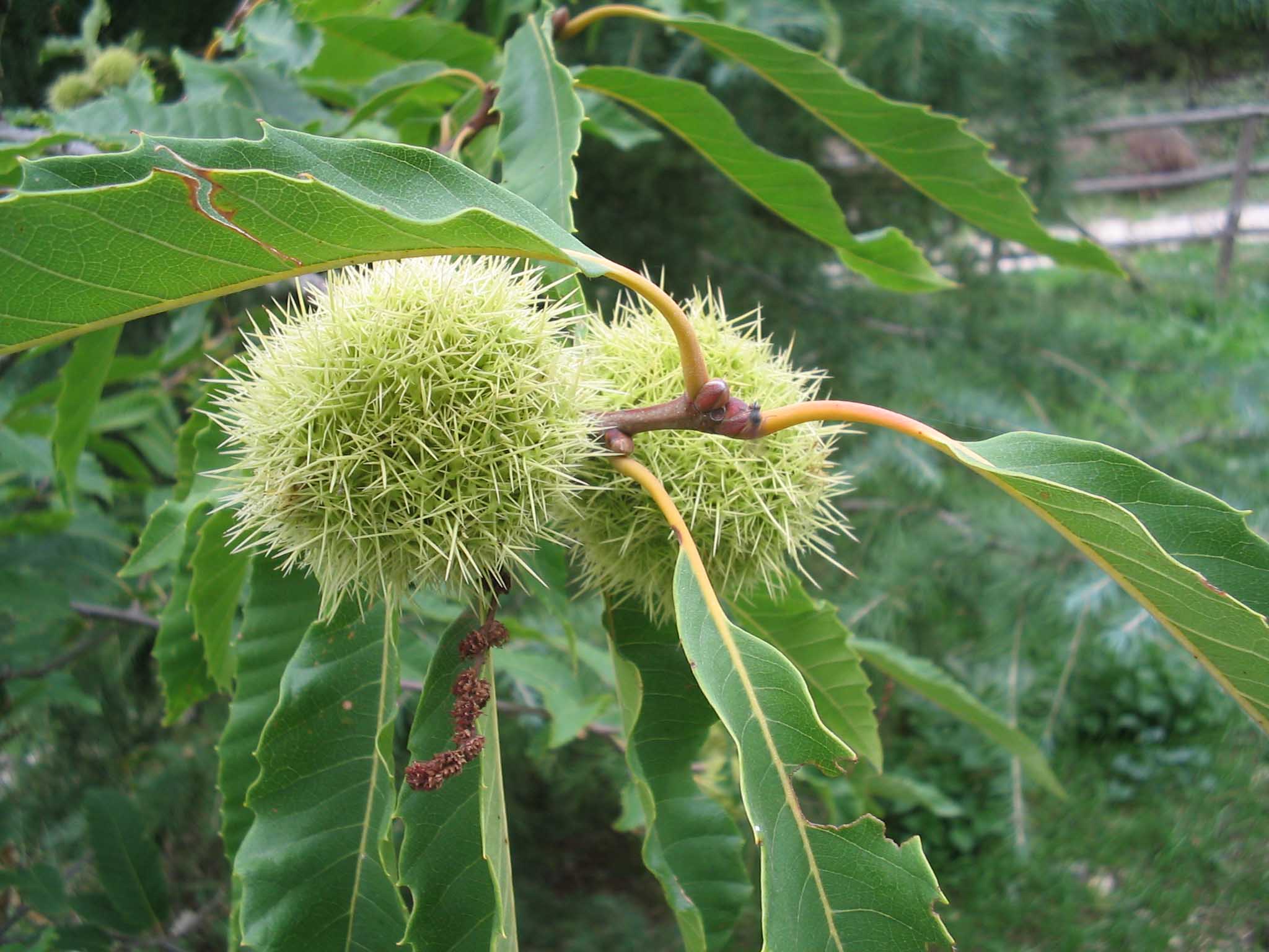 Frutto: infruttescenza trimosa composta da un pericarpo spinoso avviluppante i semi (2-3, o un unico seme, vedi oltre), con un comune involucro di brattee saldate che a maturità si apre in quattro valve.