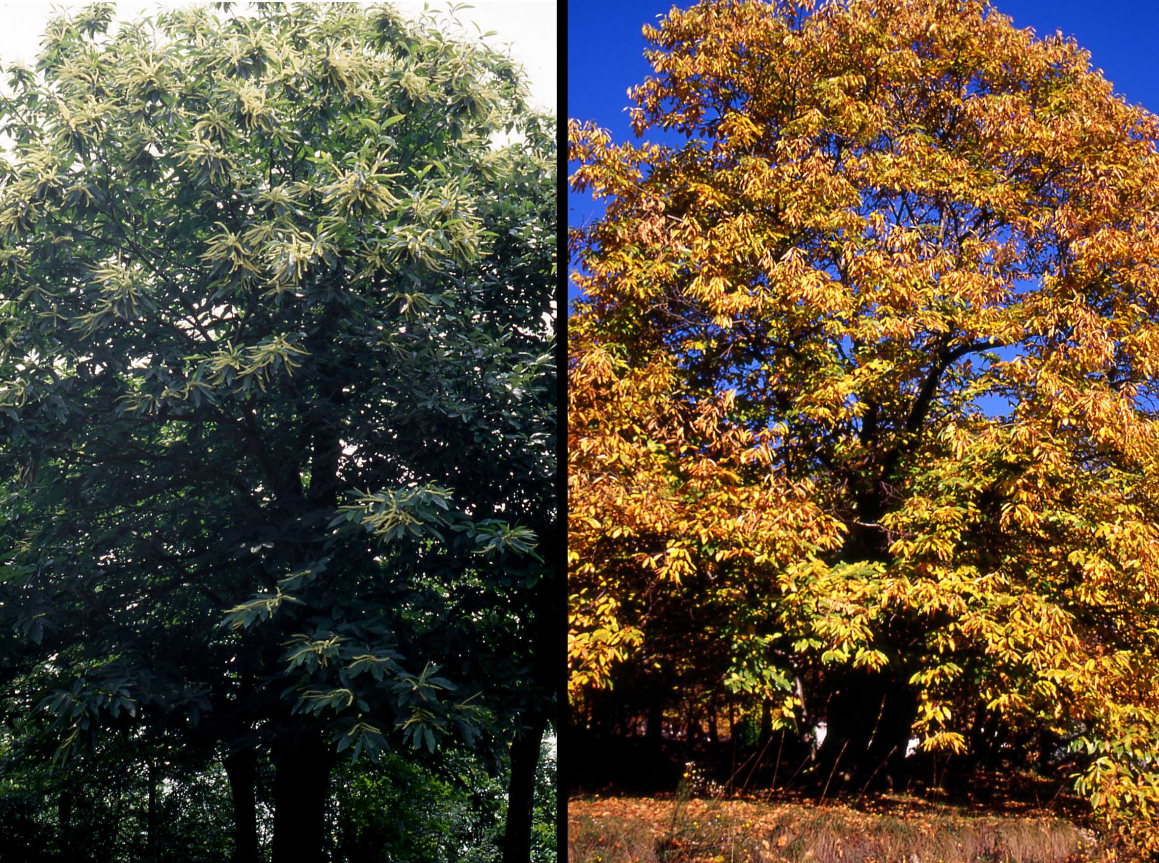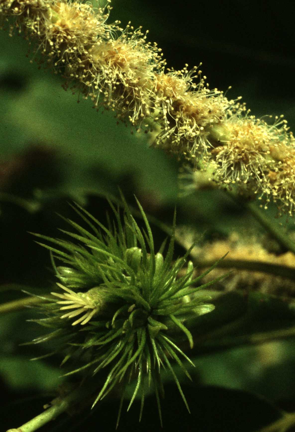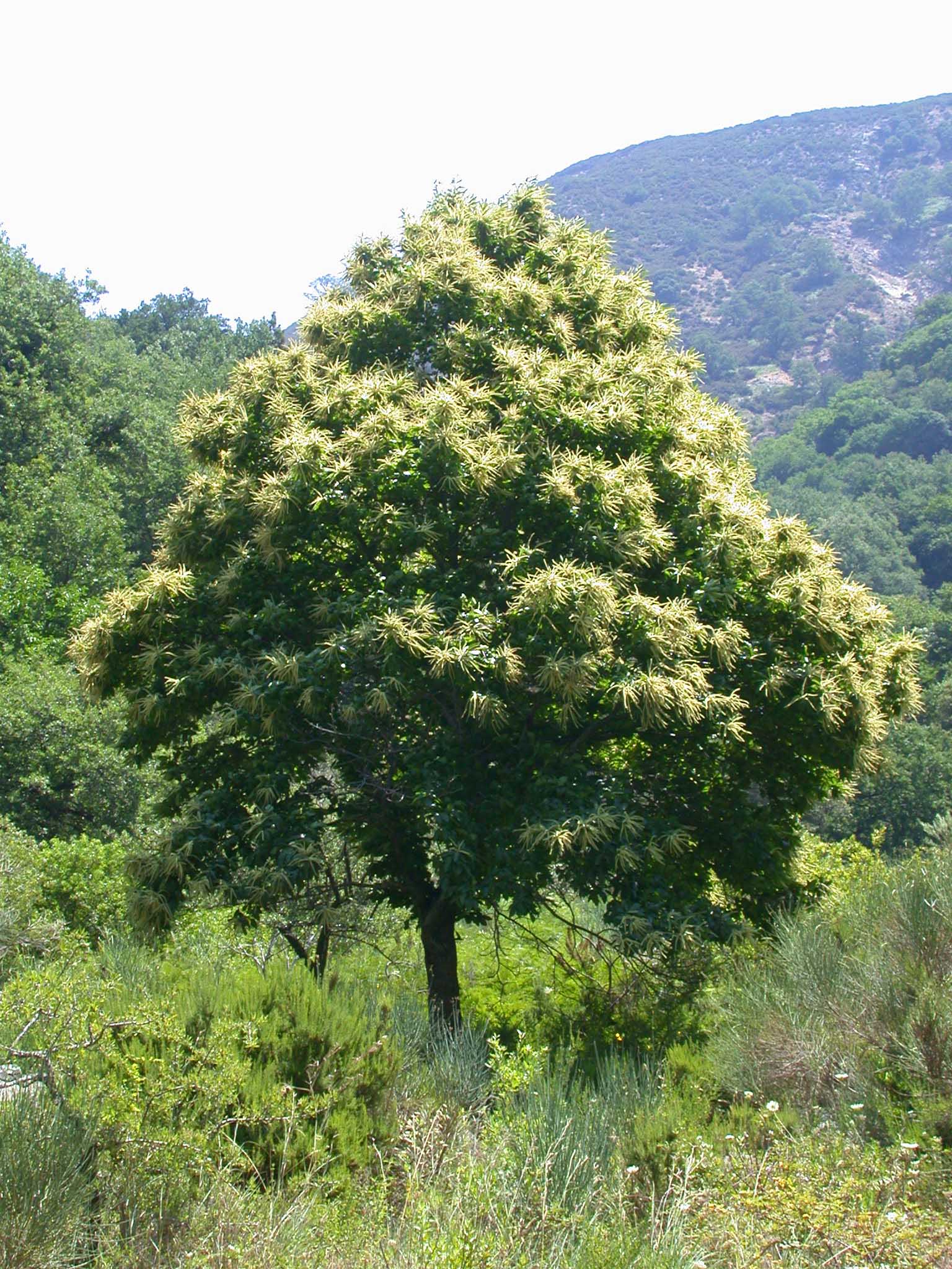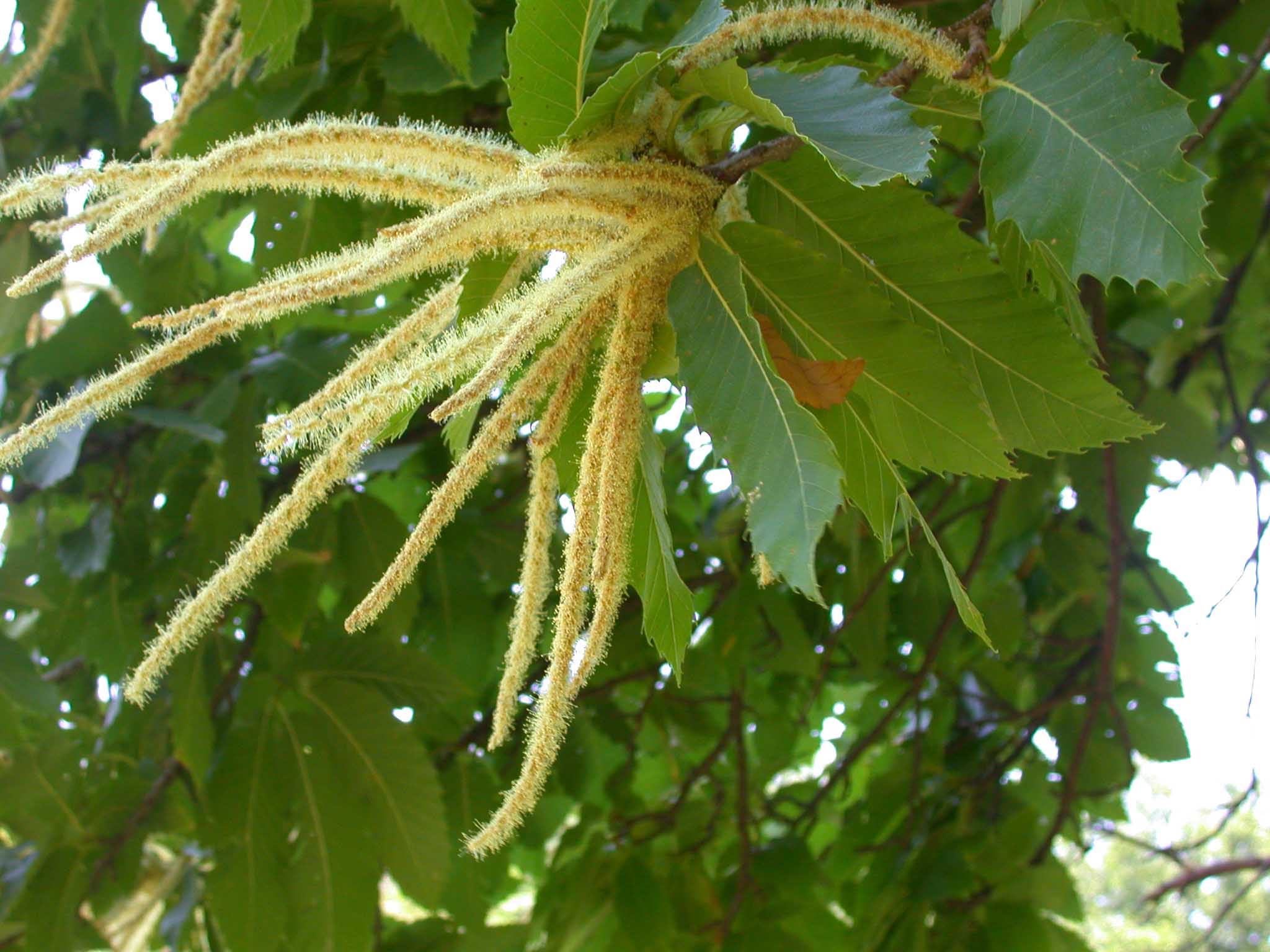 Fiore: i fiori sono monoici: i maschili sono riuniti in glomeruli portati da lunghe spighe (amenti) erette o patenti, alla base delle quali si trovano i fiori femminili. I primi, provvisti di un piccolo perigonio a 6 tepali e di numerosi stami sporgenti, sono bianco crema, molto odorosi e melliferi; i secondi non hanno perigonio e formano di solito gruppetti di 2-3 (ma possono anche essere solitari), circondati da un giro di brattee verdi reciprocamente saldate che nell’insieme formano la cupola e si trasformano nell’infruttescenza (il caratteristico riccio spinoso).