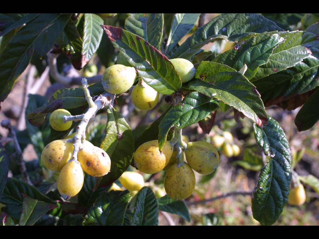 Frutto: (nespola) è un frutto piriforme, con lobi del calice persistenti alla sommità, che matura a fine giugno assumendo una tinta giallo aranciata, edule e gradevole.