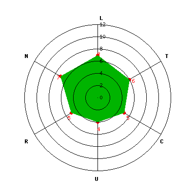 L: 7; T: 6; C: 5; U: 4; R: 5; N: 7;