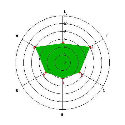 L: 5; T: 8; C: 5; U: 4; R: 5; N: 8;