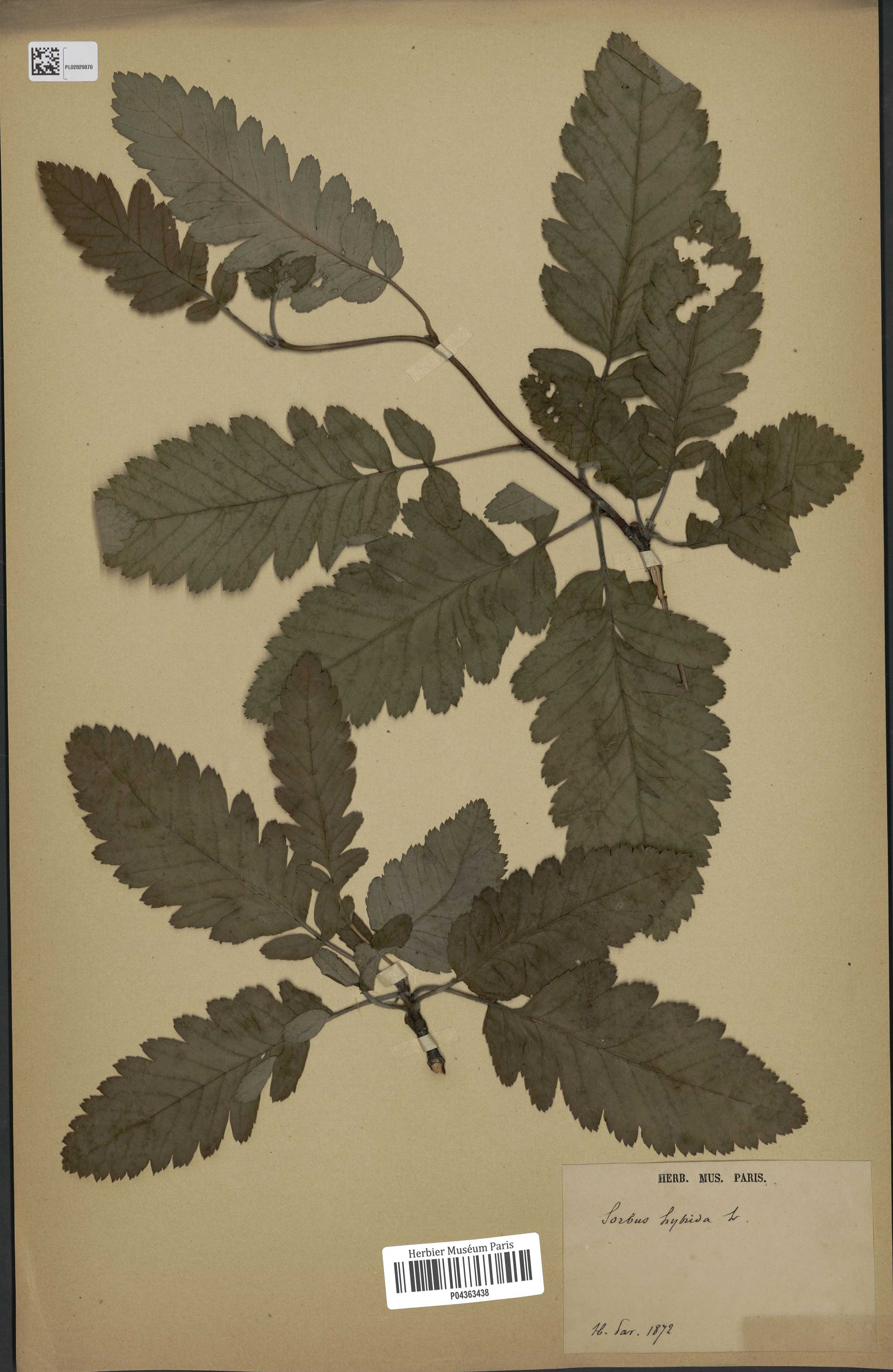 Rosaceae - Sorbus ×hybrida L.; Pignatti 1982: vol. I, p. 608; Sorbus hybrida Koch