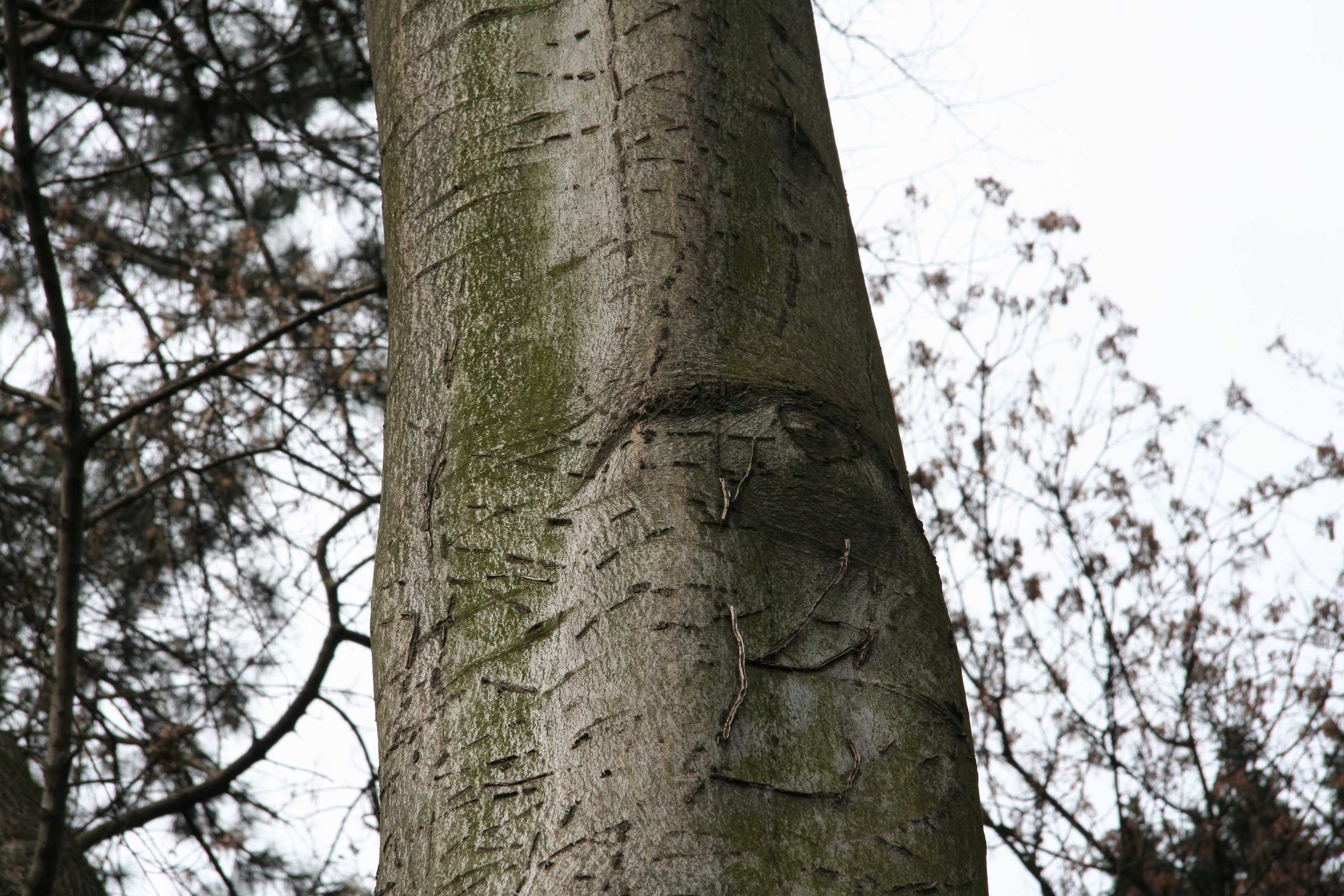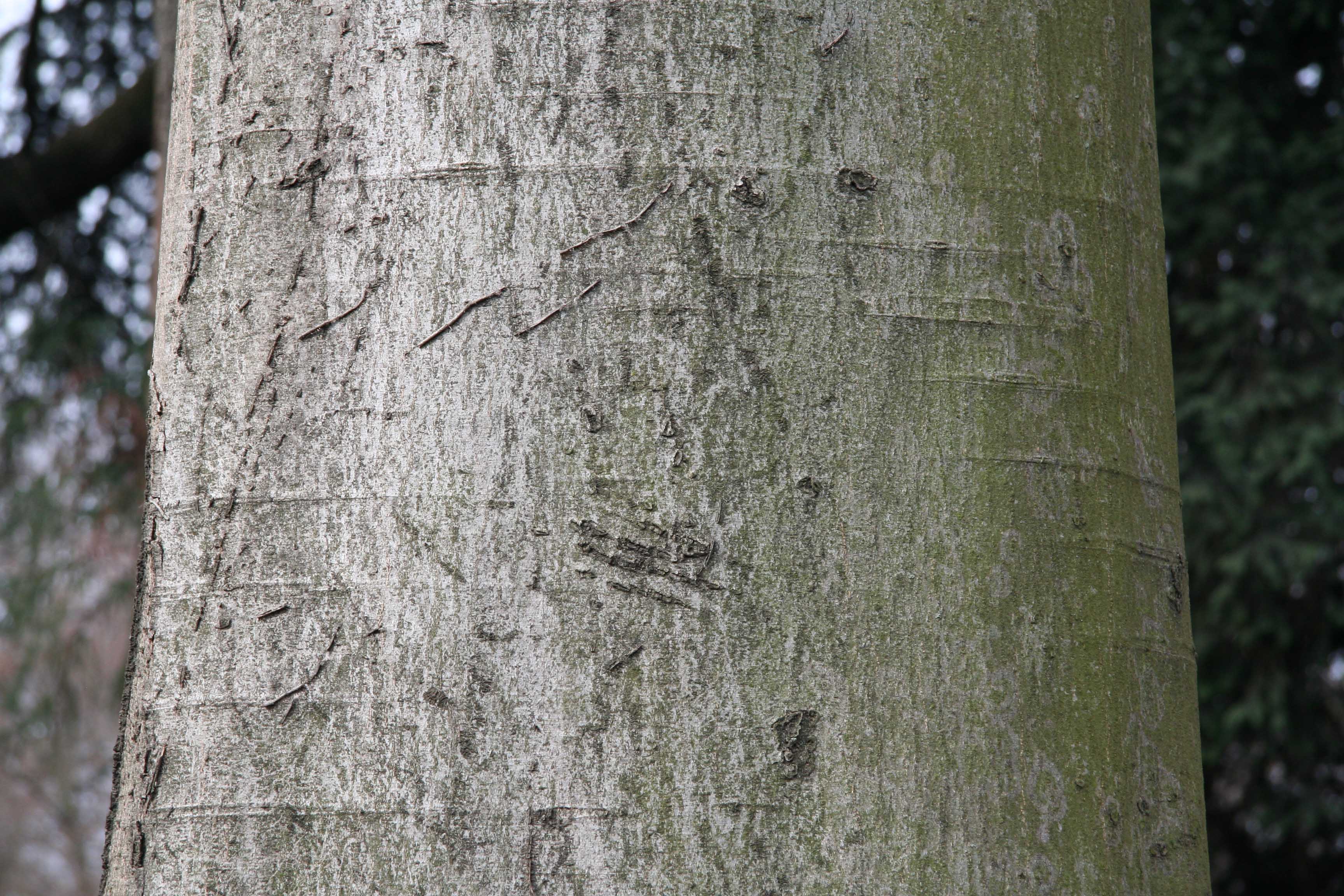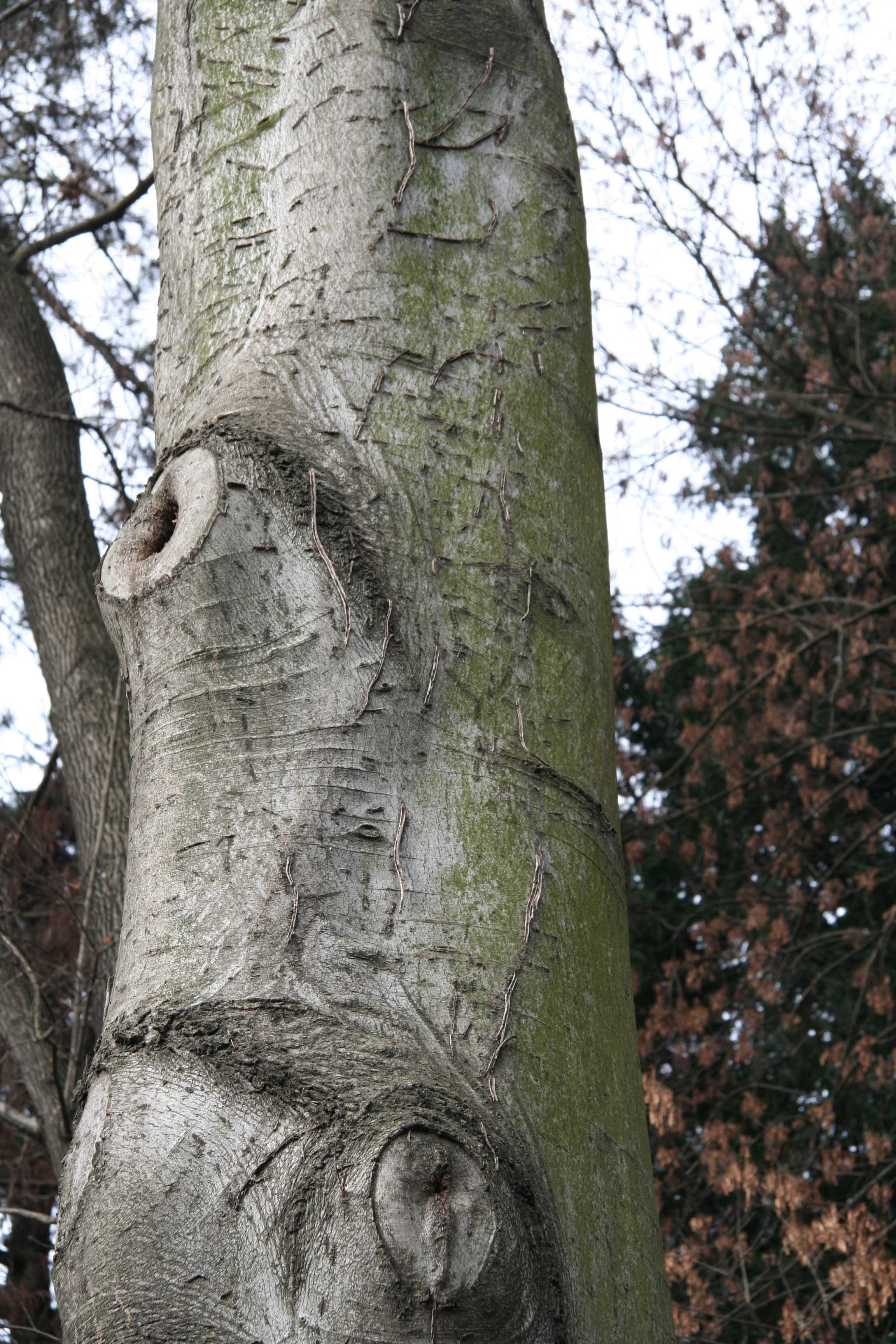 Habitus: albero molto longevo (circa 500 anni) che raggiunge eccezionalmente i 25 m di altezza, con chioma che si forma ad una certa distanza dal suolo e tende ad essere ampia, espansa, globosa, regolare, densa ma leggera, verde chiaro. Il tronco è diritto, robusto, allargato alla base con l’età, ricoperto da una sottile scorza grigio chiaro luminoso, liscia con tendenza a fessurarsi solo negli esemplari più vecchi e longevi. I rami primari raggiungono diametri consistenti assumendo andamento laterale e verticale, mentre quelli secondari tendono a ricadere. Apparato radicale costituito da grosse radici molto espanse che penetrano profondamente nel terreno e da radici superficiali che, specialmente in terreni compatti, tendono ad affiorare e sollevare strutture sovrastanti.