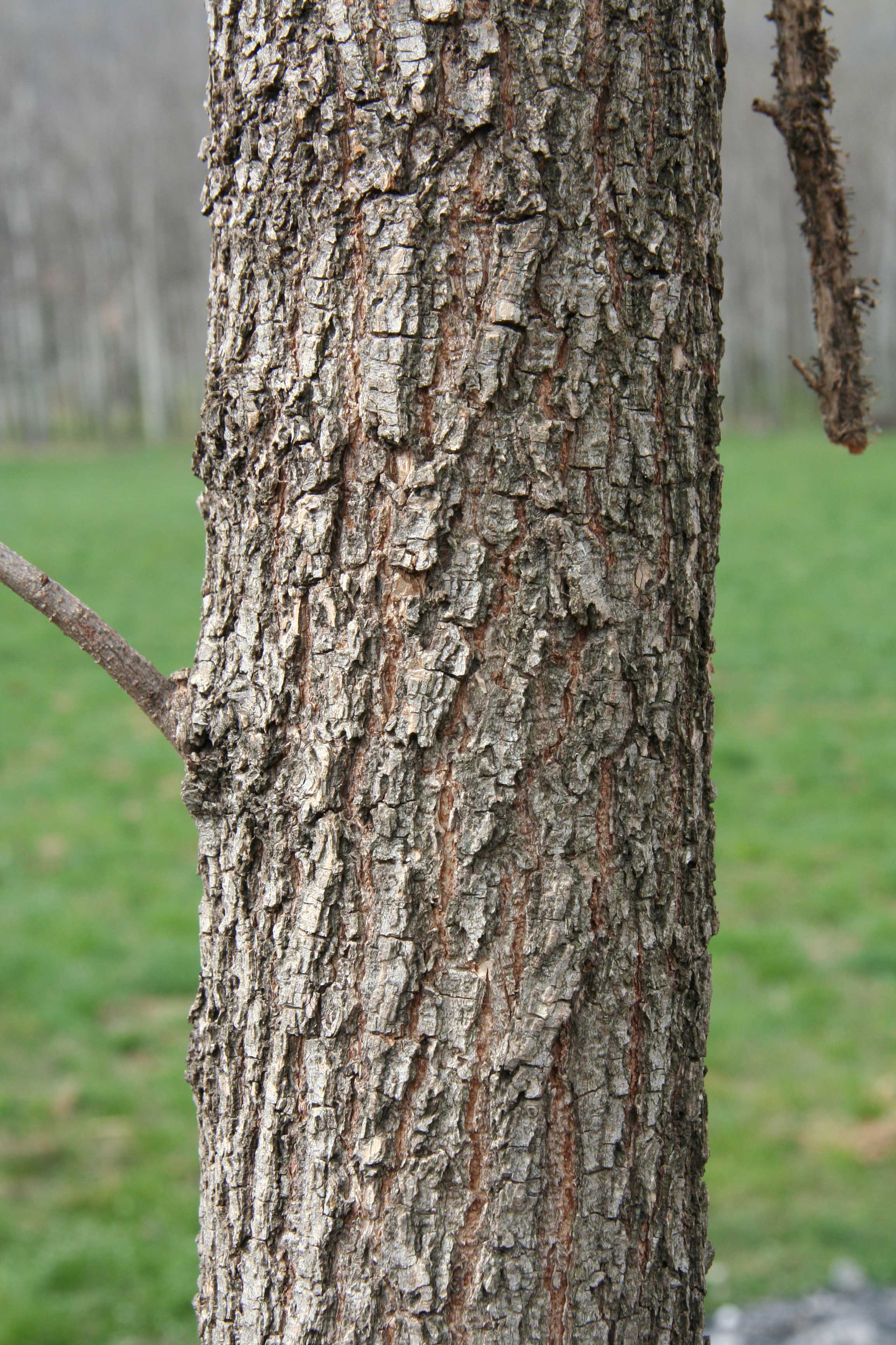 Habitus: albero di rapido accrescimento, non molto longevo (vive circa 100 anni), maestoso, alto fino a 30 m, dalla chioma tondeggiante, ampia e densa che si allarga irregolarmente, con rami terminali un po’ penduli. Il tronco è diritto con scorza inizialmente liscia, grigiastra, poi opaca e rugosa, screpolata, più o meno fittamente solcata in verticale, di colore grigio brunastro. A differenza di altri Olmi, questa specie non emette polloni radicali. I rametti dell'anno portano gemme alterne, pluriperulate, appuntite, pubescenti e molto scure, quasi nere, lunghe 3-5 mm. La specie ha crescita simpodiale di tipo monocasio (la dominanza di crescita dell'anno successivo l’assume una gemma laterale, in contrapposizione al tipo dicasio nel quale sono due gemme a prendere la dominanza mentre la gemma apicale abortisce). Albero dotato di robuste radici ma non particolarmente profonde, è in grado di profittare anche di suoli superficiali.
