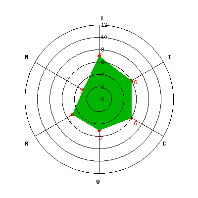L: 7; T: 6; C: 6; U: 5; R: 5; N: 3;