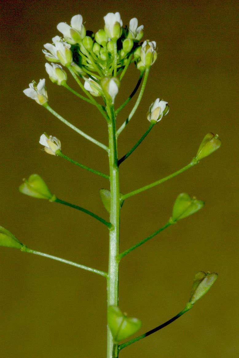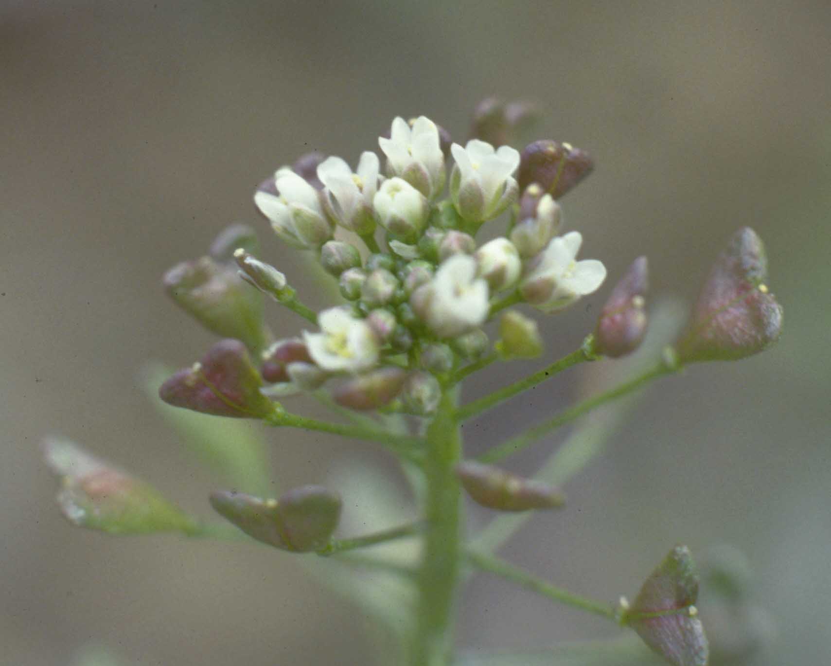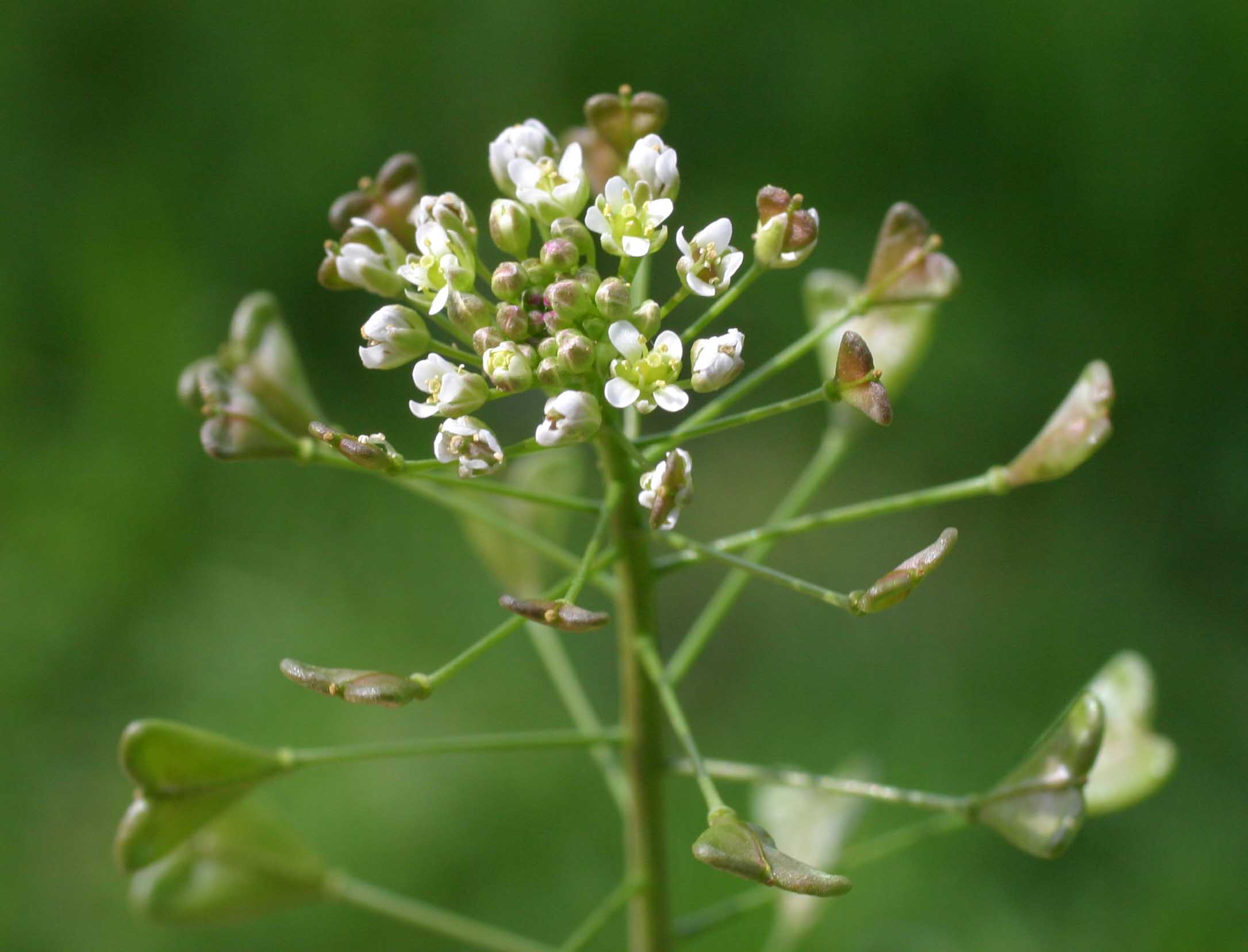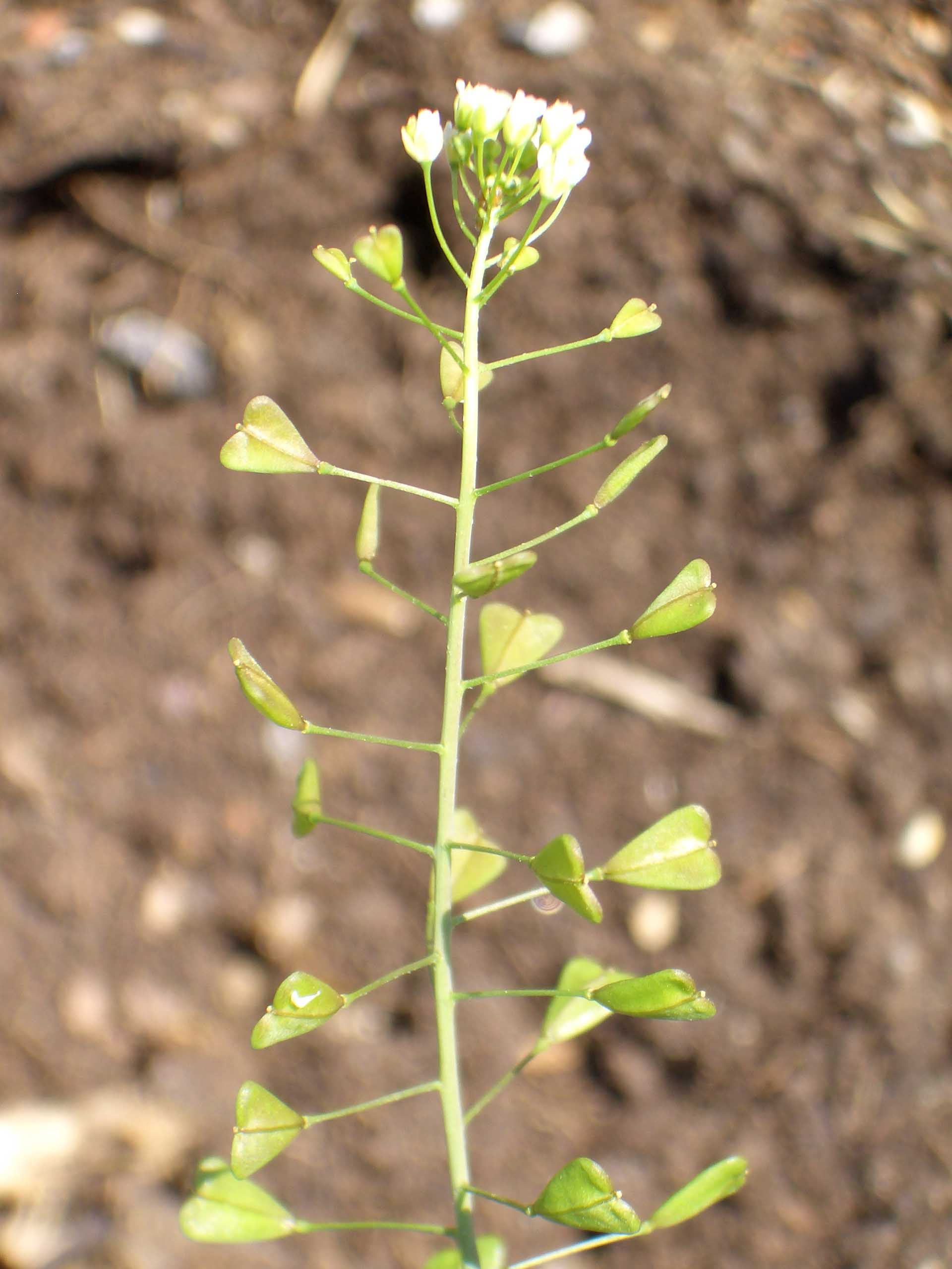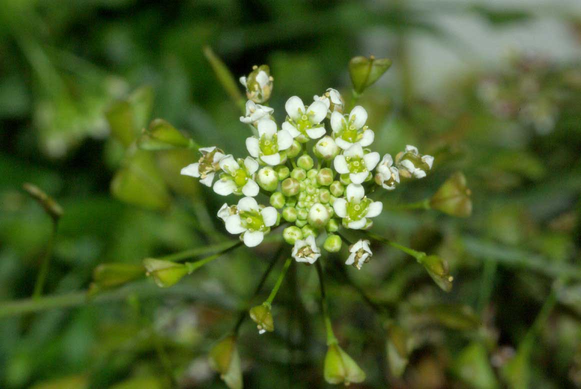 Frutto: siliquetta ovato triangolare, con il vertice rivolto verso il peduncolo, a due logge divise da un tegumento sottile, deiscente per due valve, lunga 4-6 mm.