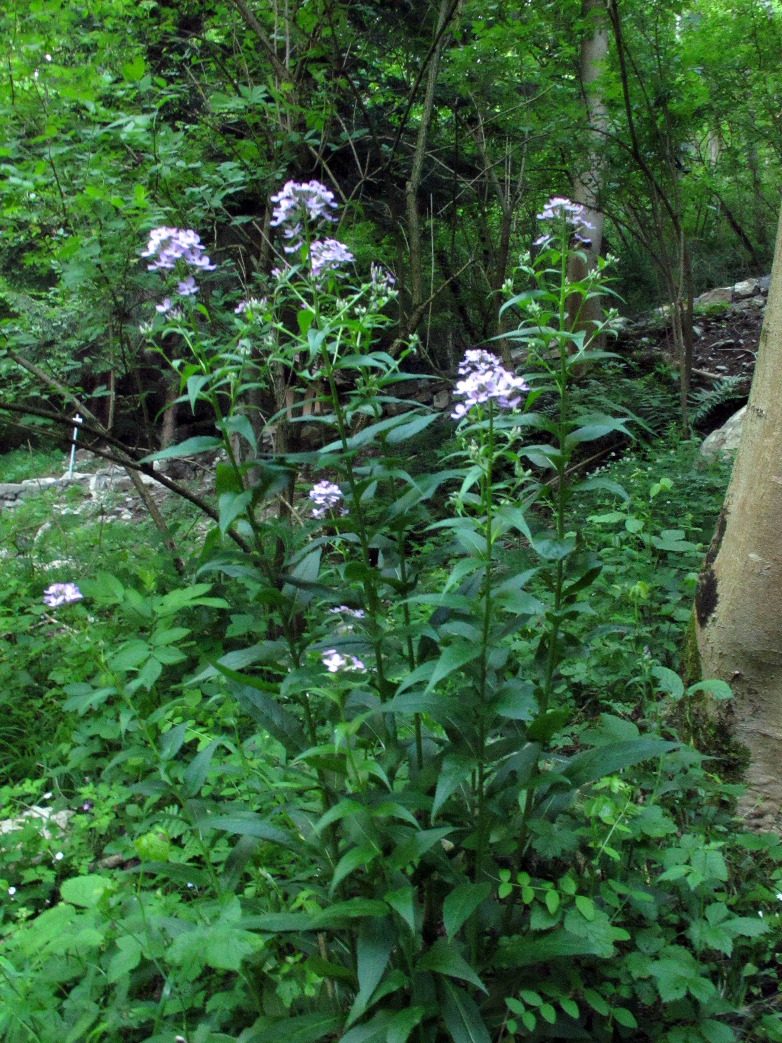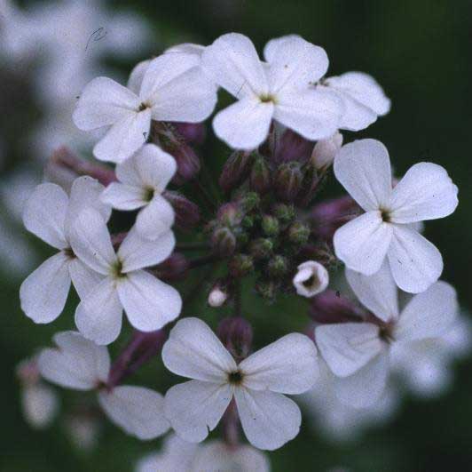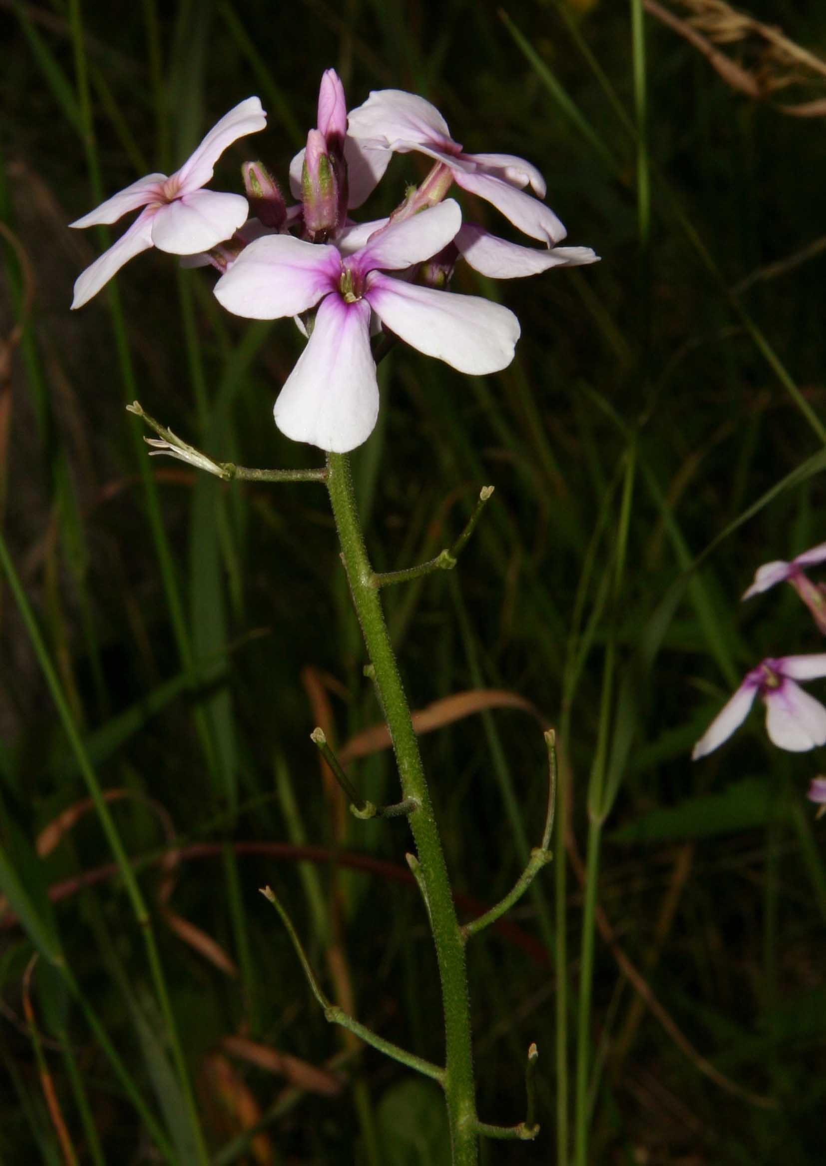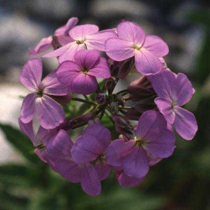 Fiore: i fiori sono riuniti in racemi corimbosi che possono raggiungere una lunghezza di 30 cm e più, sono delicatamente profumati soprattutto al crepuscolo. Quando gli steli portano contemporaneamente fiori e frutti il peso può farli piegare. Il calice è composto da 4 sepali lunghi 6-7 mm; la corolla è formata da 4 petali lunghi 2-2,5 cm, spatolati, di colore violetto più o meno intenso. Nelle forme coltivate sono talvolta anche rosa o bianchi. Androceo di 6 stami in due gruppi, i 4 più vicini all’ovario sono più lunghi dei due opposti. Androceo con stimma bilobato.