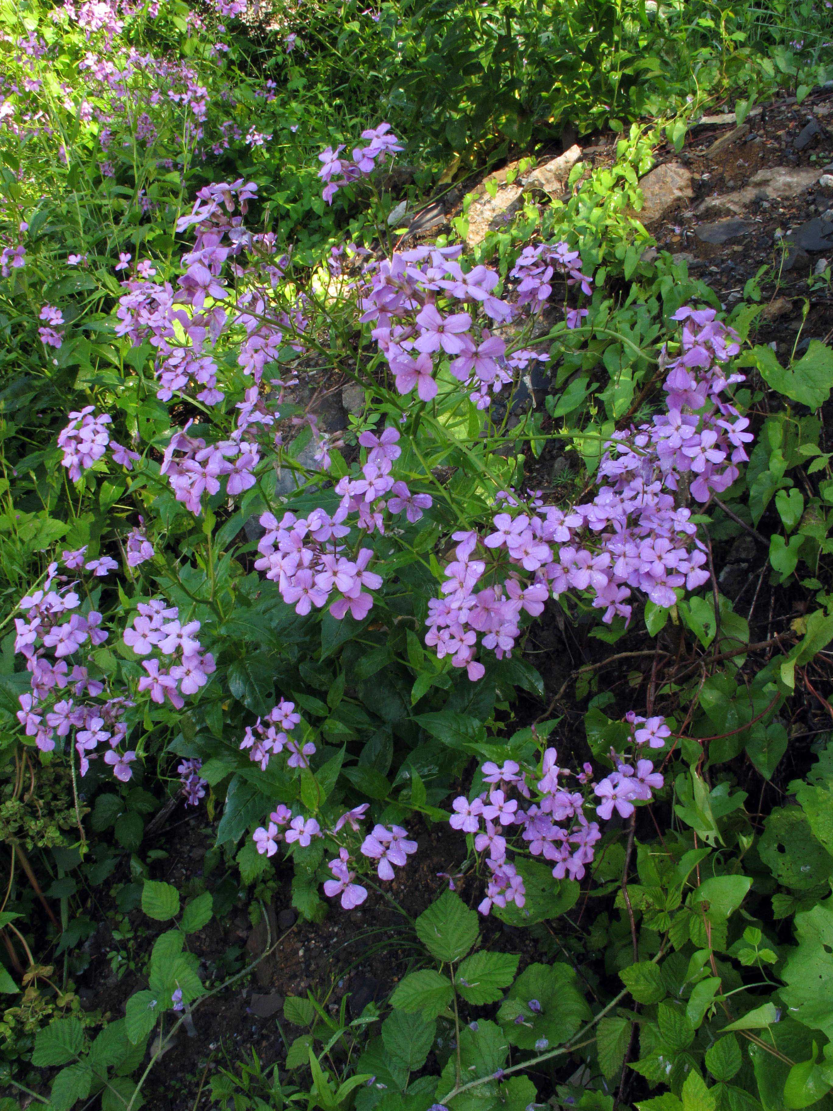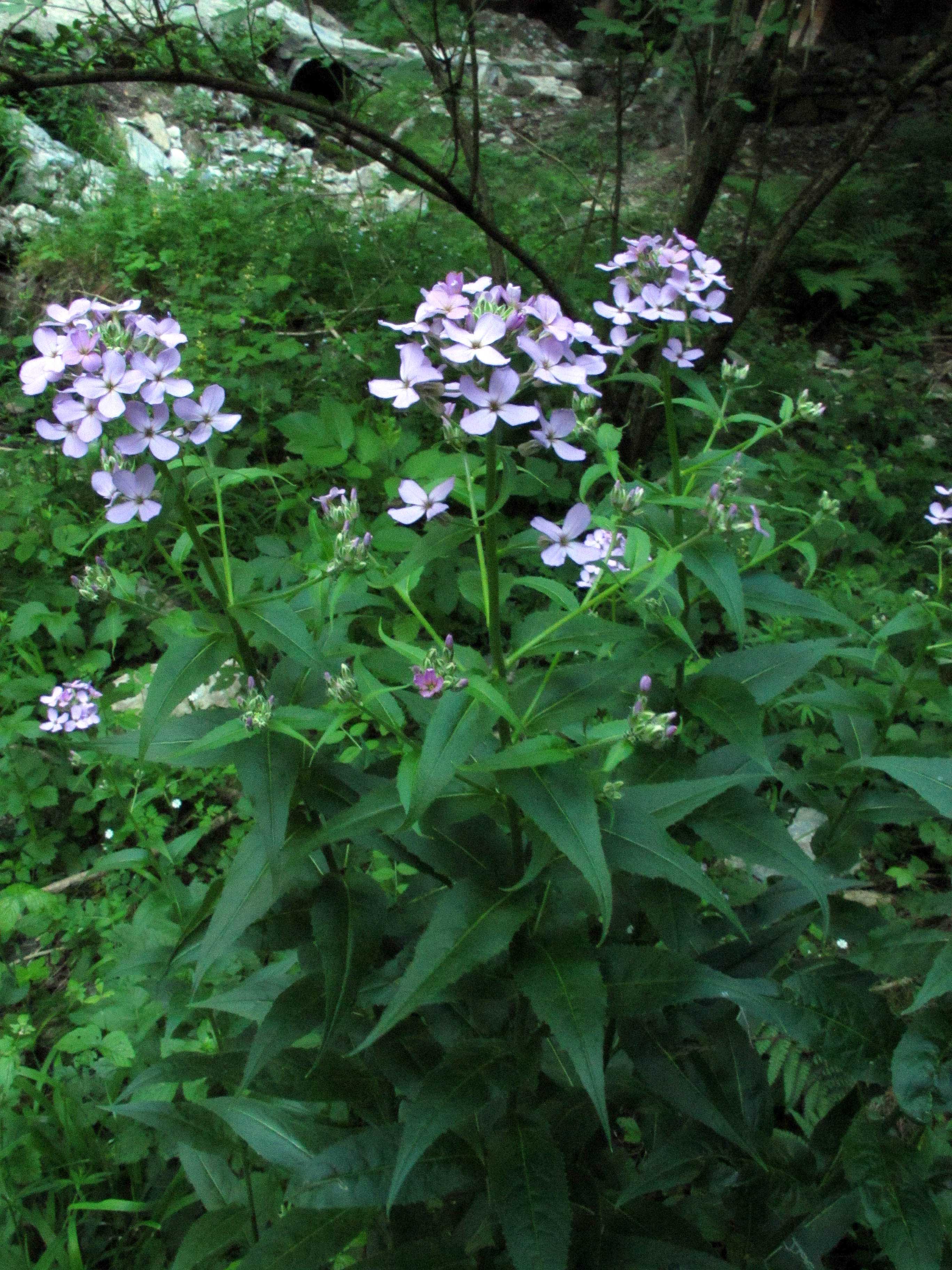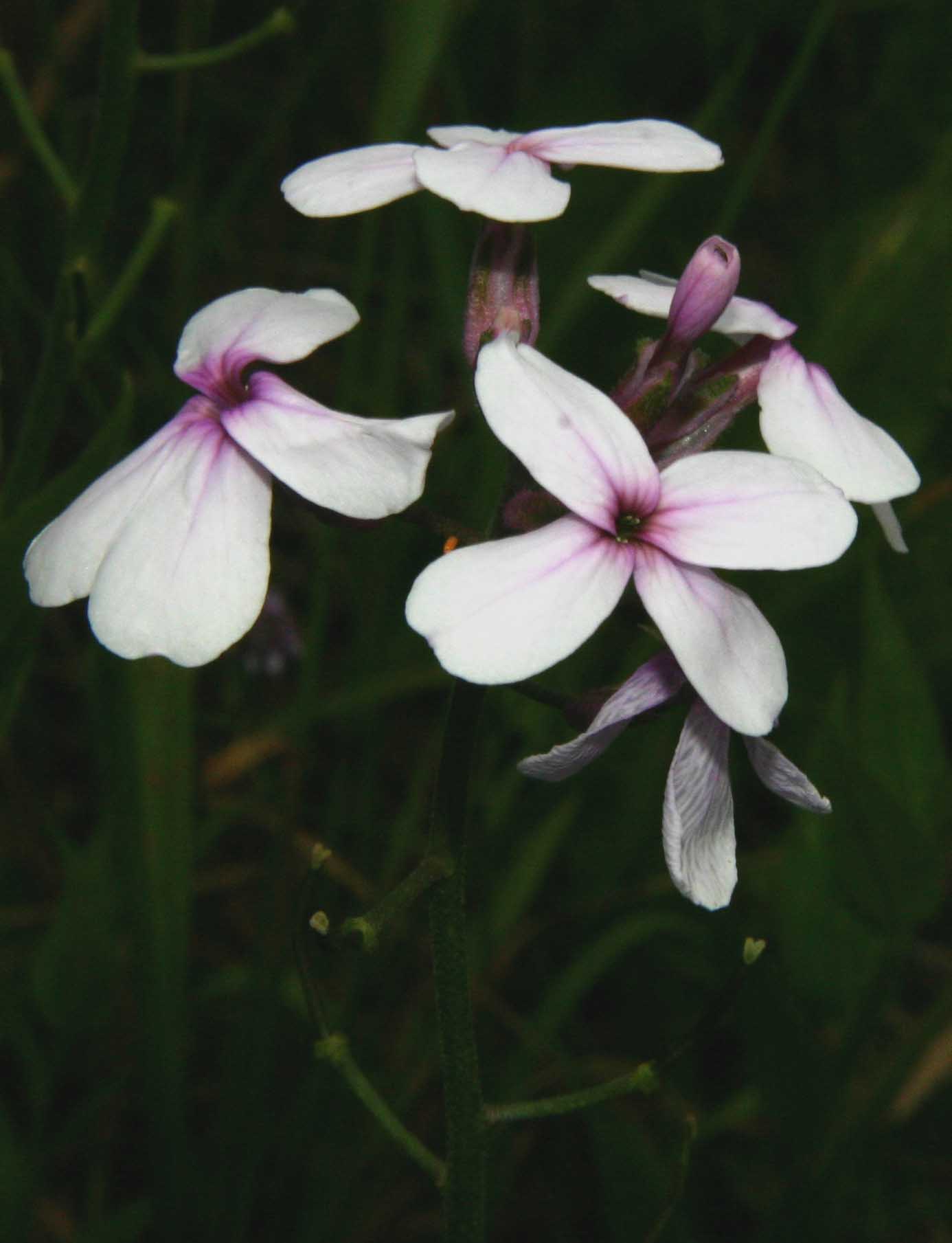 Fiore: i fiori sono riuniti in racemi corimbosi che possono raggiungere una lunghezza di 30 cm e più, sono delicatamente profumati soprattutto al crepuscolo. Quando gli steli portano contemporaneamente fiori e frutti il peso può farli piegare. Il calice è composto da 4 sepali lunghi 6-7 mm; la corolla è formata da 4 petali lunghi 2-2,5 cm, spatolati, di colore violetto più o meno intenso. Nelle forme coltivate sono talvolta anche rosa o bianchi. Androceo di 6 stami in due gruppi, i 4 più vicini all’ovario sono più lunghi dei due opposti. Androceo con stimma bilobato.