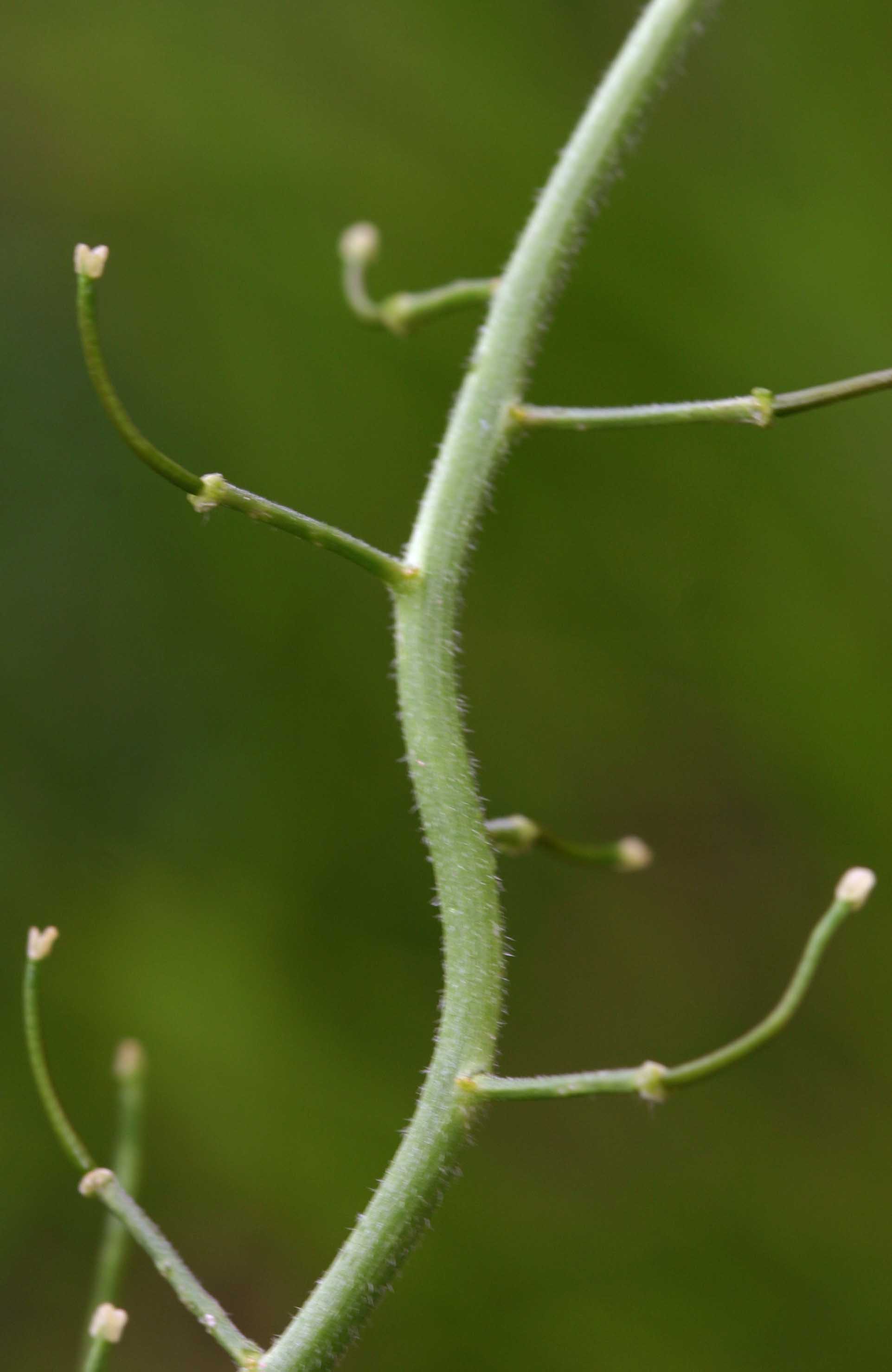 Frutto: il frutto è una siliqua deiscente per il lungo, eretta, cilindrica, lunga 3-8 cm, del diametro di 1,5-3 mm, glabra o finemente pubescente portata da un peduncolo lungo 1-2 cm, con costrizioni tra i semi.