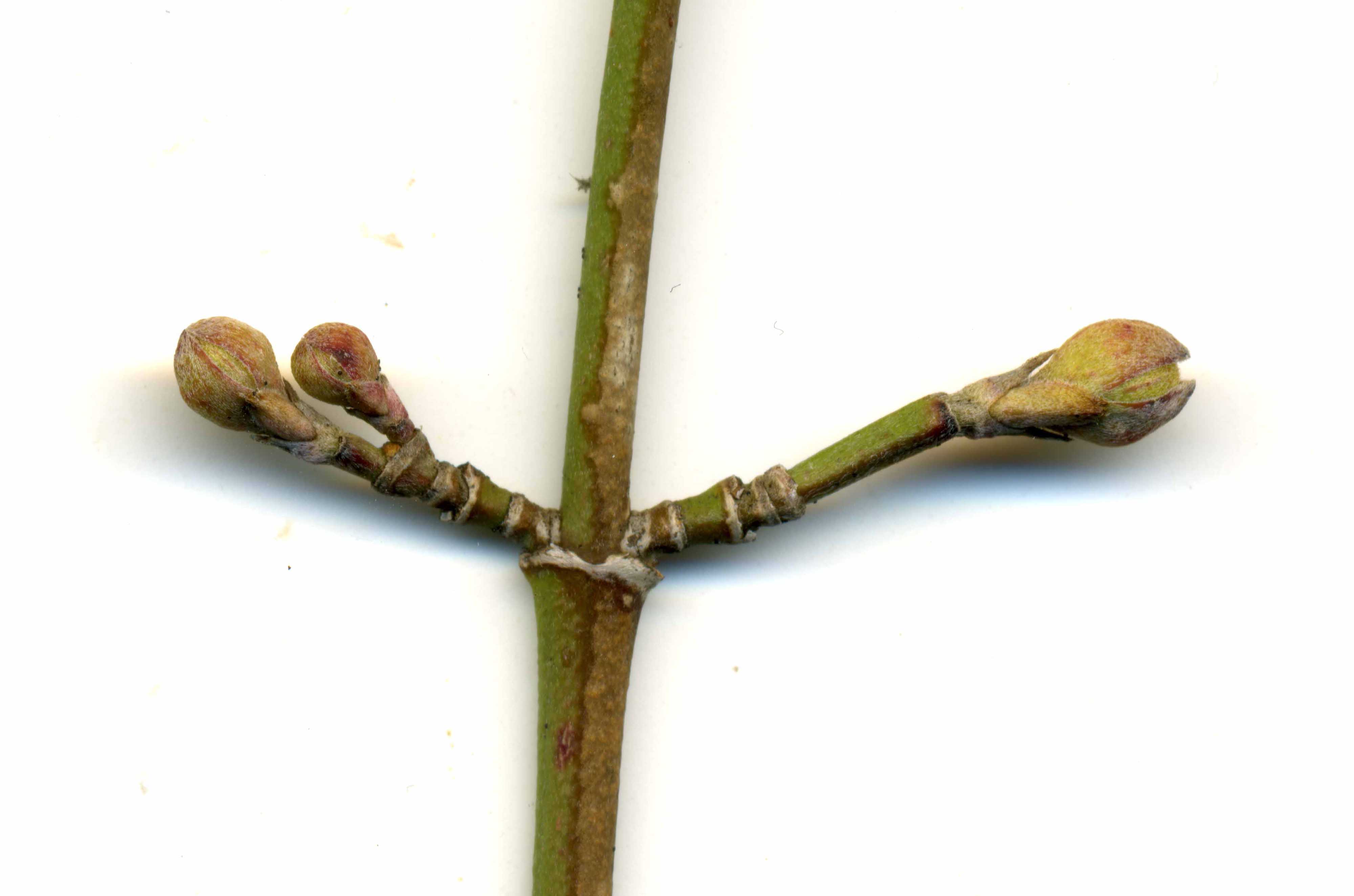 Habitus: alberello che non supera i 6 m d’altezza (eccezionalmente 8 m), con chioma regolare, globosa ed espansa orizzontalmente. Il tronco è diritto o flessuoso, costoluto, allargato alla base, rivestito di una corteccia sottile e screpolata in placchette regolari di colore ocraceo o bruno ruggine. I rami giovani sono verdastri, leggermente pelosi e a sezione quadrangolare.