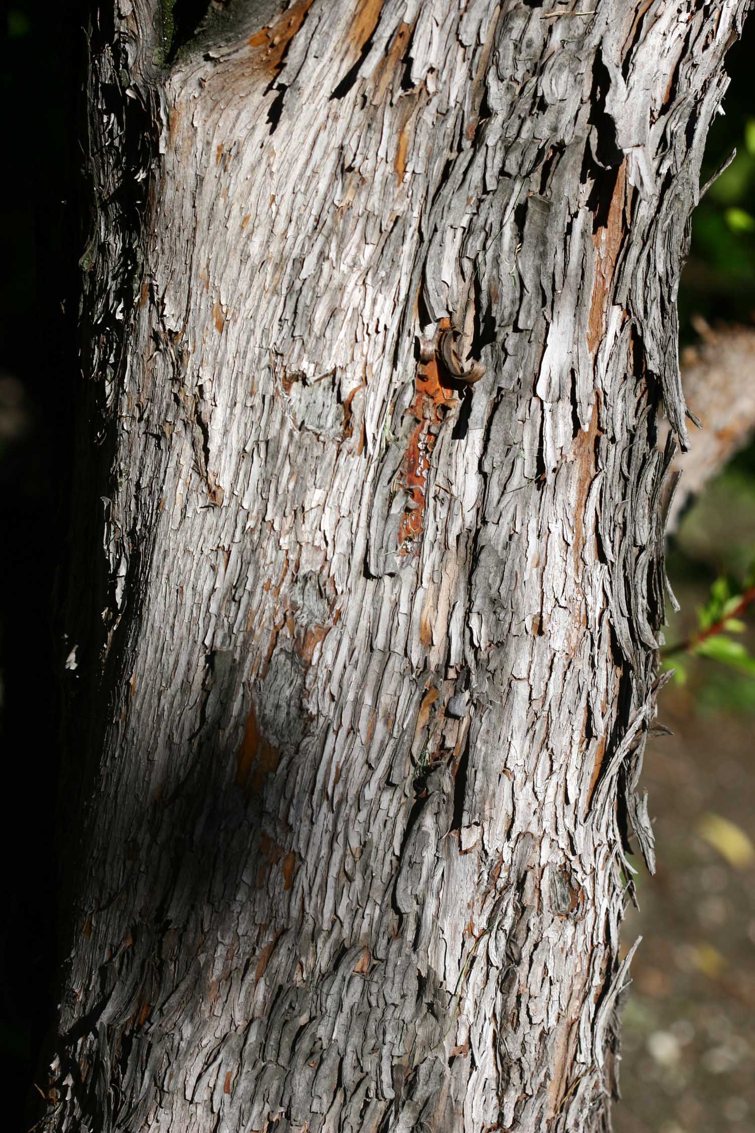 Habitus: pianta molto longeva quando non soggetta a ceduazione (in media 100 anni, anche se qualche esemplare pare sia arrivato ai 400), variabile nelle dimensioni, da piccolo albero sempreverde dal tronco eretto e sinuoso e chioma globosa e irregolare, in condizioni non ottimali rimane allo stadio arbustivo, molto ramificato sin dalla base; può raggiungere i 5 m di altezza, ed eccezionalmente i 10 m, a crescita molto lenta. I ramuli sono pelosi. La scorza è rossastra, in particolare quella dei rami, e rugosa, che invecchiando si sfalda in placche sottili longitudinali.