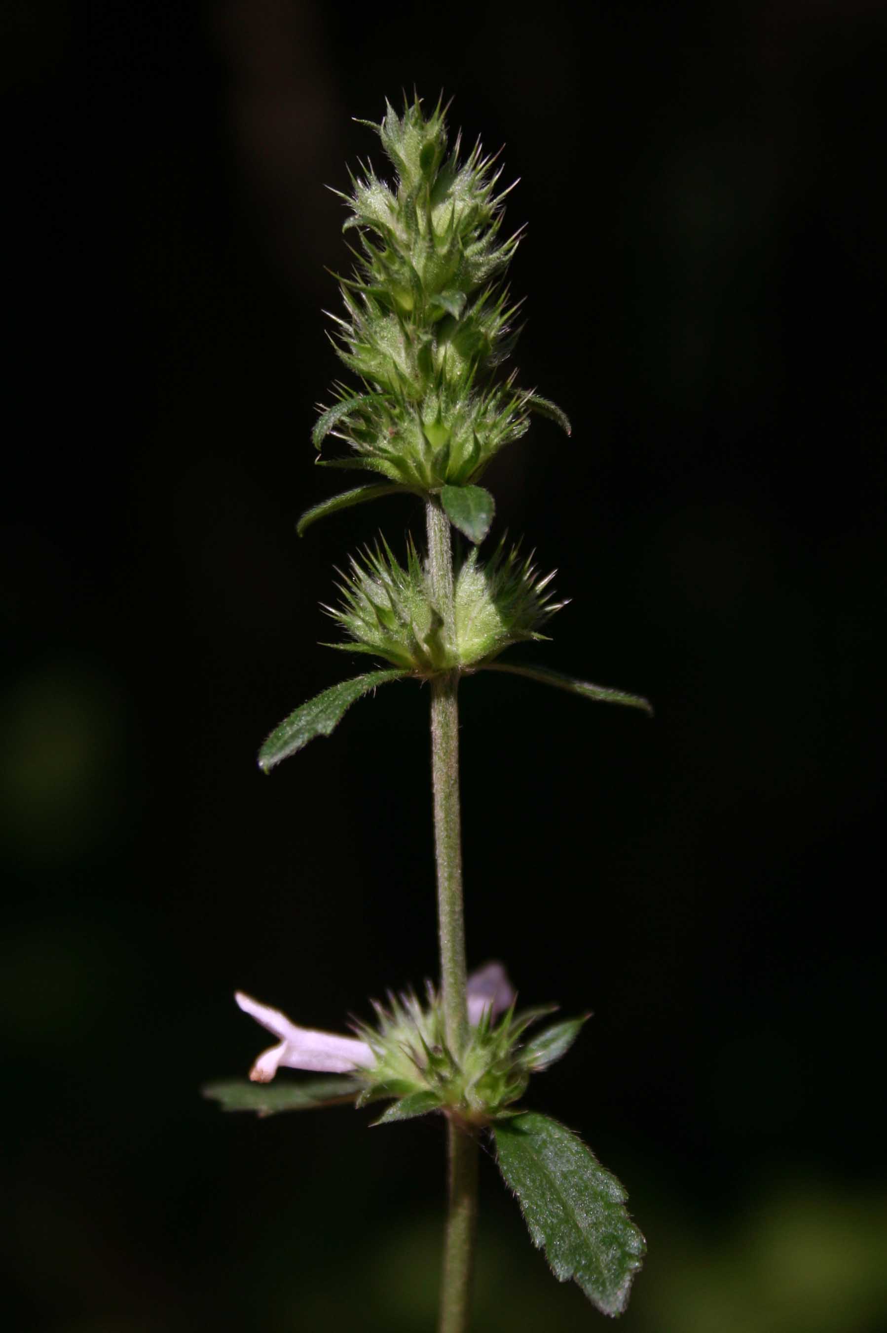 Fiore: sessili, muniti di bratteole ovali lanceolate più corte del calice, riuniti in glomeruli situati all’ascella di brattee crenate e pelose, lineari oblunghe ed attenuate alla base e costituenti uno spicastro terminale, ovoide od oblungo, spesso interrotto alla base. Calice persistente, gamosepalo, attinomorfo, lungo 4-5 mm, tubuloso campanulato, leggermente cigliato alla fauce, con 5 denti triangolari, subulati, spinescenti all’apice; il calice è accompagnato da una breve bratteola ovale acuminata lunga 5-12 mm.