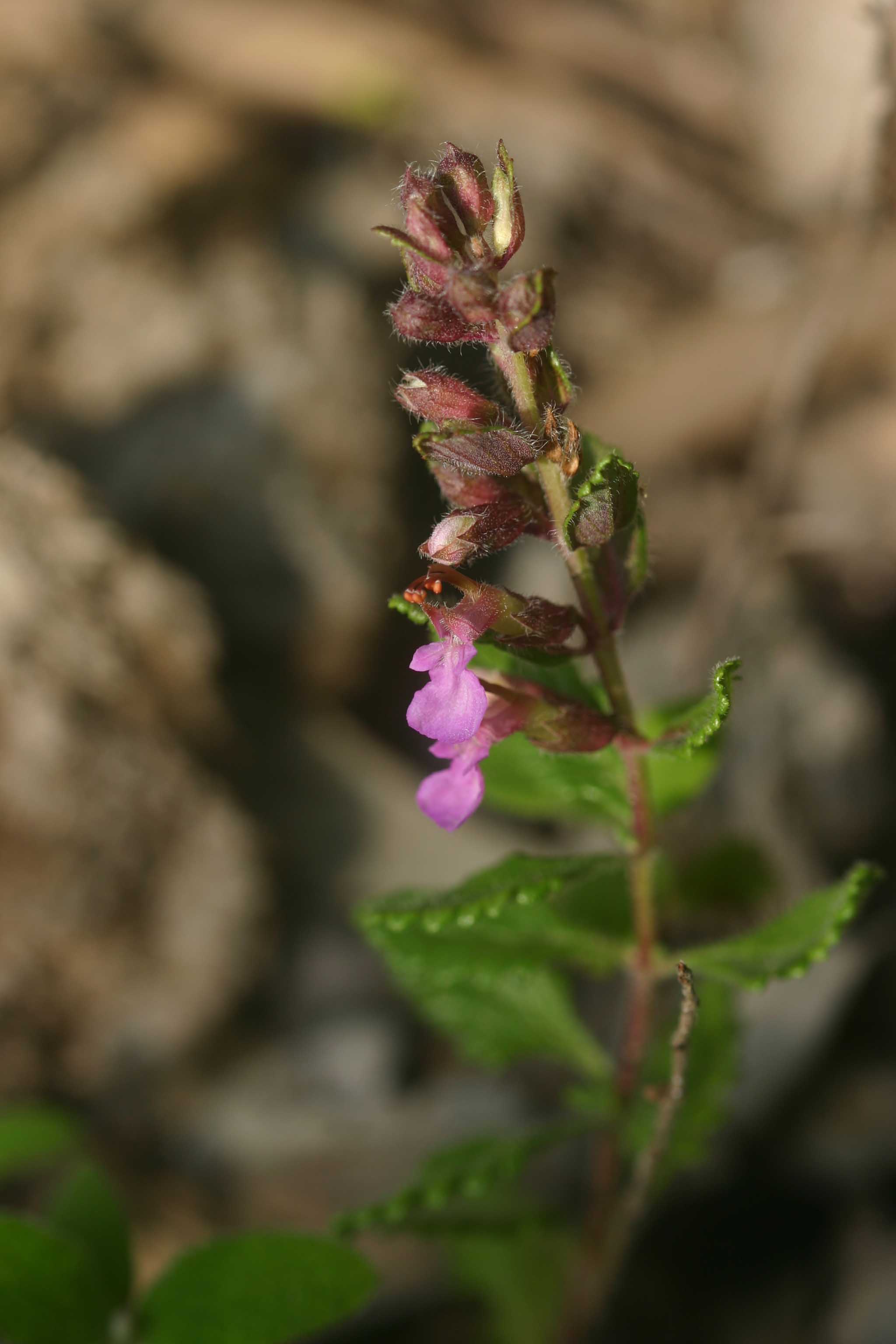 Fiore: l’infiorescenza è un denso spicastro composto da fiori disposti unilateralmente raccolti in verticillastri densi composti da 2-6 fiori ermafroditi, profumati, brevemente peduncolati, che sbocciano all’ascella di brattee simili a piccole foglie nella parte superiore del fusto. Il calice, lungo 6-8 mm, appena bilabiato e peloso, talvolta rossastro, ha un tubo lungo 4-5 mm, con 5 denti acuminati e divergenti, tutti uguali.