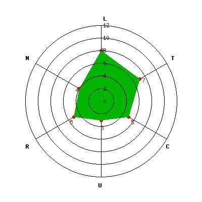 L: 8; T: 7; C: 5; U: 3; R: 5; N: 4;