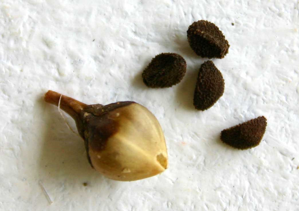 [ EP - BC ] EP (entomofilia): Il polline è trasportato da insetti, che vengono indotti a visitare il fiore con svariate strategie di richiamo, con o senza ricompensa; BC (barocoria): I semi relativamente pesanti, da soli o dentro i frutti, cadono per gravità a maturità o dopo un periodo di postmaturazione.
