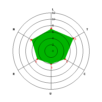 L: 7; T: 8; C: 5; U: 4; R: 5; N: 7;