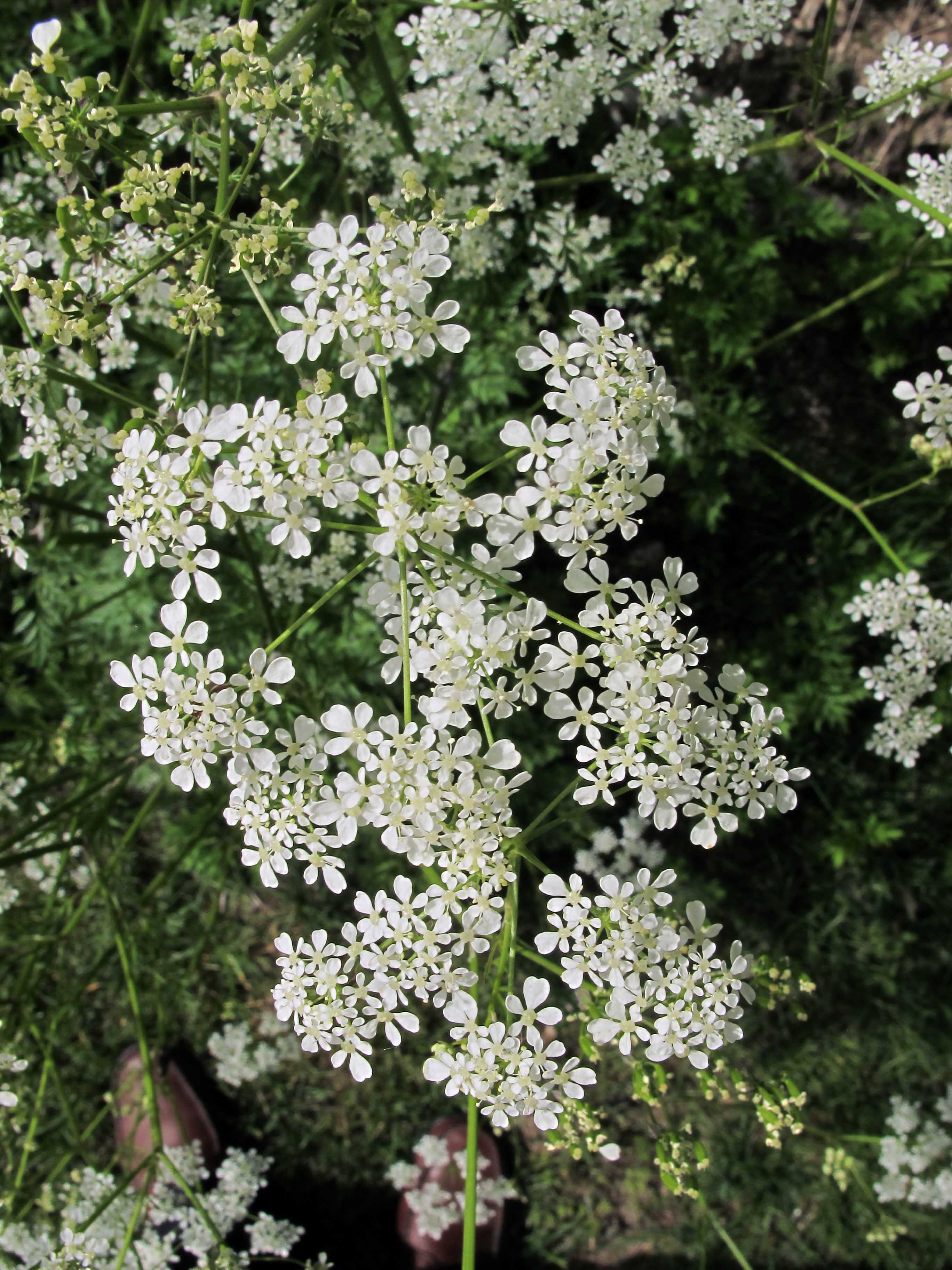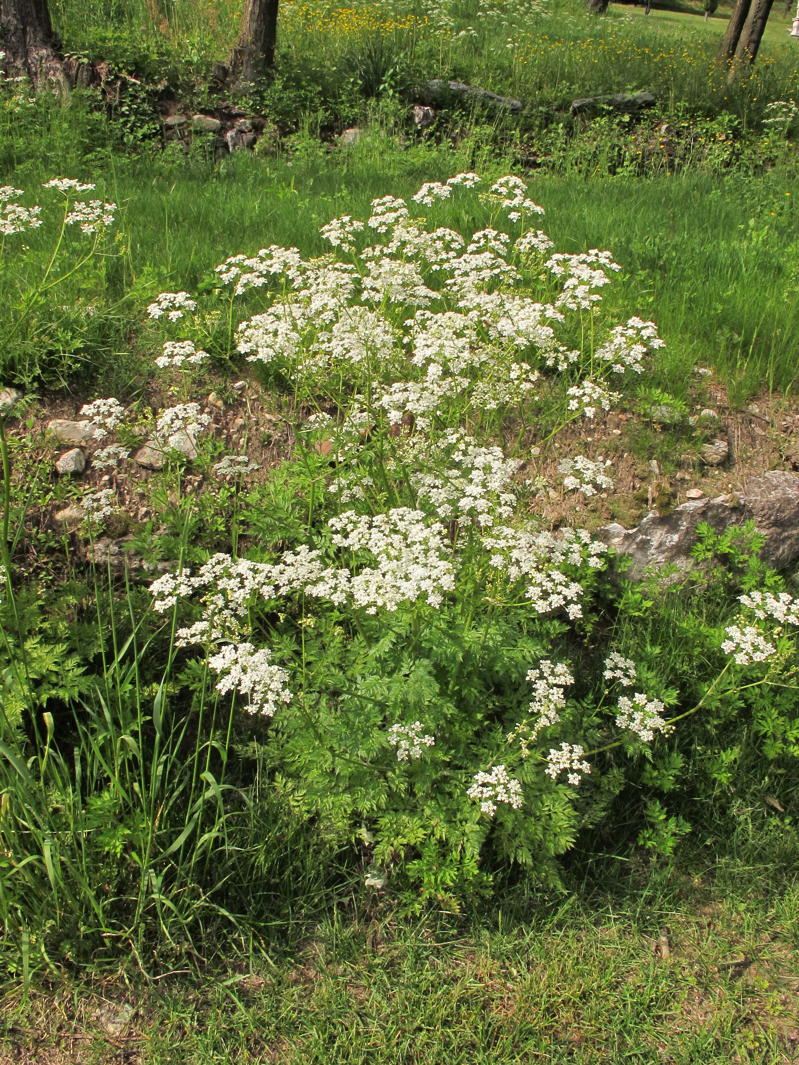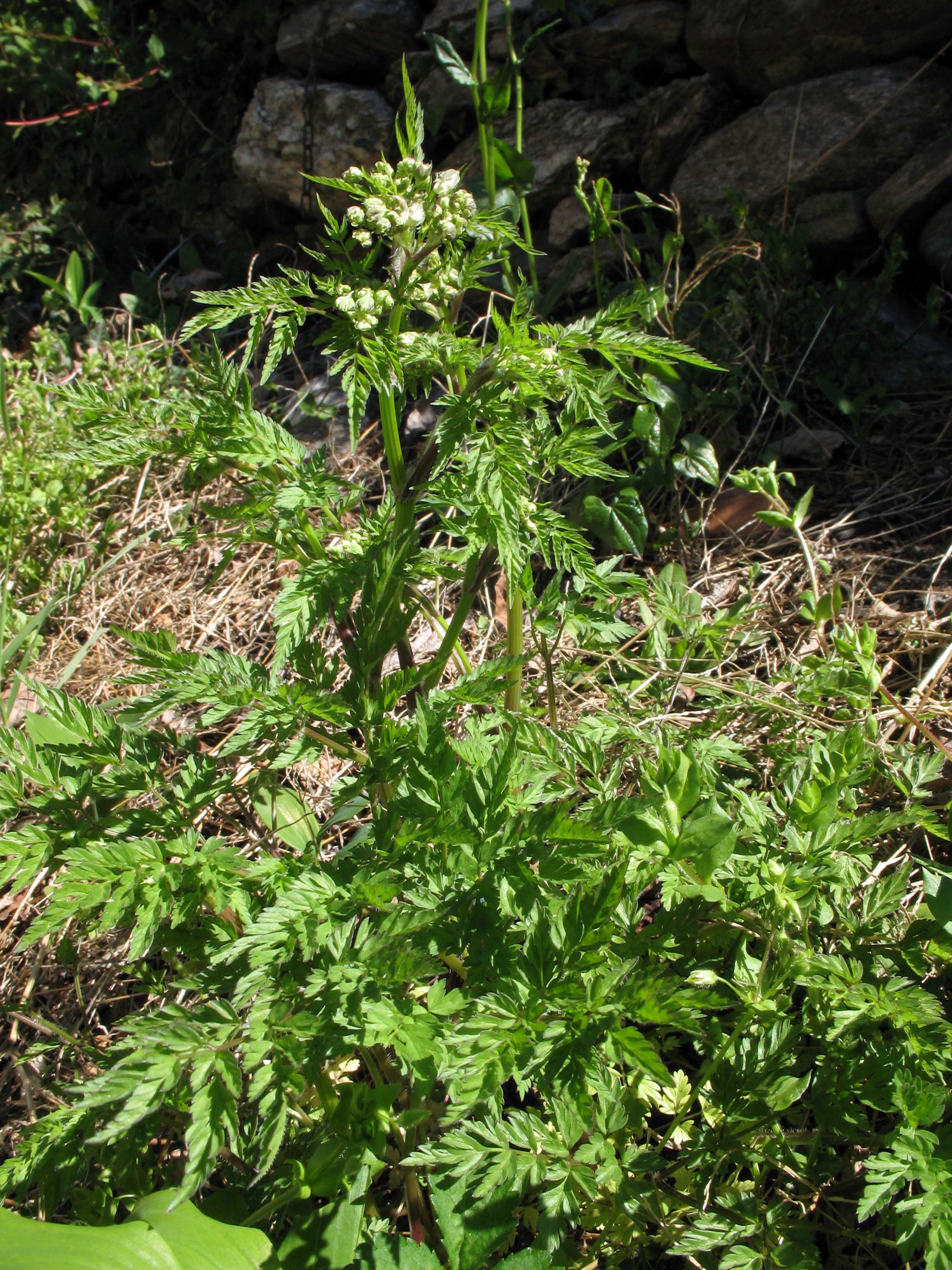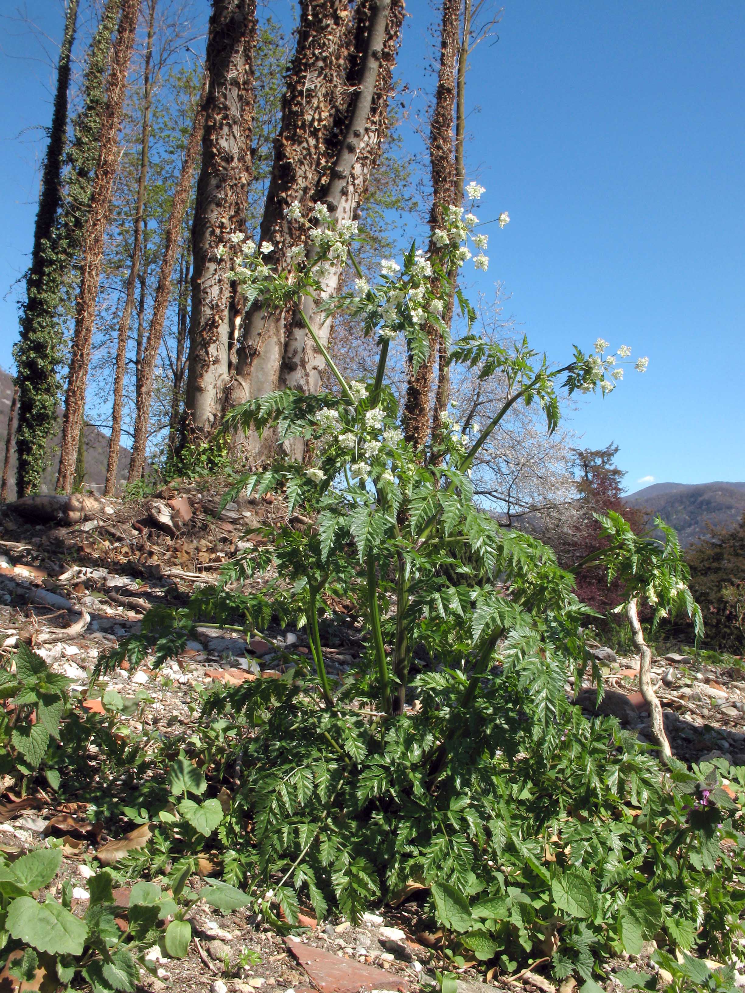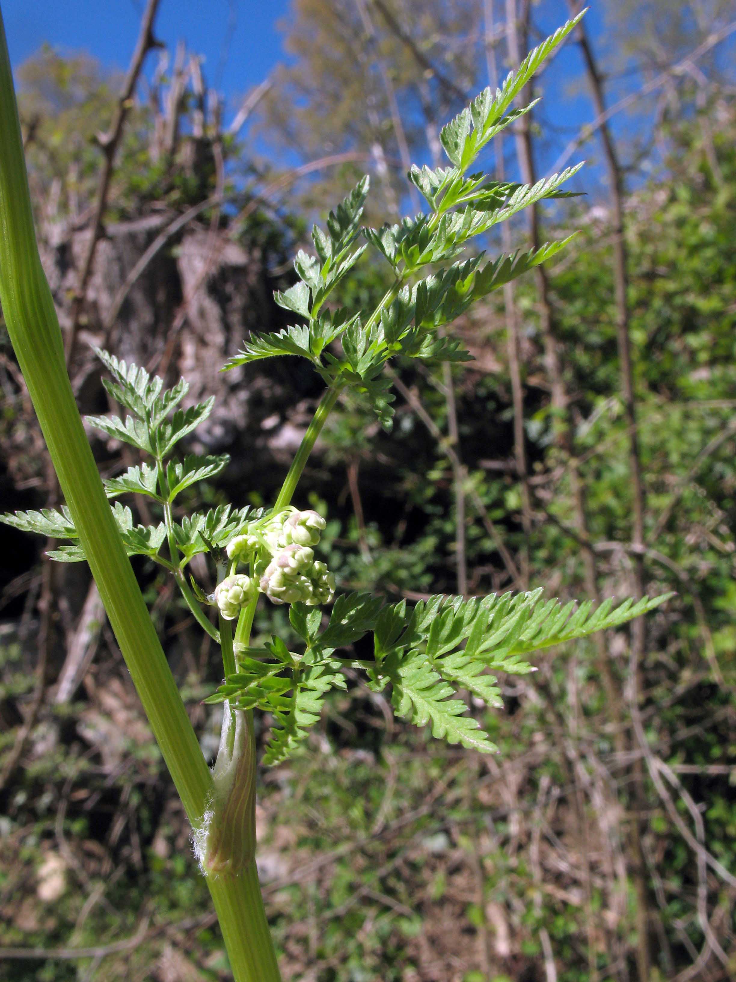 Habitus: erbacea perenne, talvolta biennale, con odore pungente, somigliante a quello della Carota (Daucus carota L.), aromatico, alta 50-130 cm, fornita di grosse e lunghe radici fittonanti con anelli trasversali. I fusti sono robusti, eretti, striati, cavi e generalmente ramificati in alto, glabri nella porzione superiore, irsuti in quella inferiore per peli riflessi, privi di macchie color porpora e non rigonfi ai nodi.