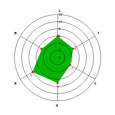 L: 6; T: 5; C: 4; U: 7; R: 8; N: 5;