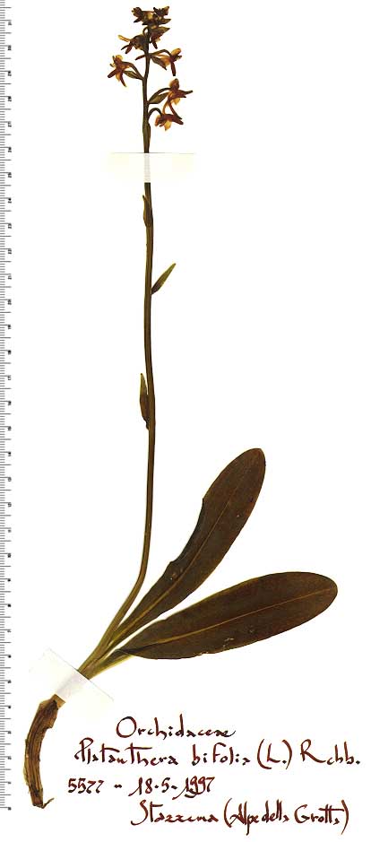 Variabilità: specie molto variabile. In Europa mediana si possono distinguere due ecotipi: il più frequente è infeudato sui tappeti erbosi e nei boschi chiari su substrati da neutri a basici, da secchi a freschi; è relativamente distinguibile per una sua certa precocità, per la sua robustezza e per i fiori più grandi (labello lungo 10-16 mm, sperone lungo 20-41 mm). Il secondo ecotipo, legato ai luoghi acidi, ha fioritura tardiva di circa 3 settimane rispetto al primo, con fiori nettamente più piccoli; molto frequente a quote basse dal Belgio alla Scandinavia, vegeta sui tappeti erbosi, nei boschi chiari e nelle torbiere acide. La distinzione tra i due ecotipi è stata effettuata raramente tanto che la loro rispettiva diffusione non è ben nota. Inoltre, questa distinzione cozza contro un pasticcio nomenclaturale poiché non è possibile precisare con certezza quale dei due taxon rappresenti la varietà nominale, dato che Linneo non ha indicato il luogo di raccolta dell’olotipo Orchis bifolia. Alcuni autori lo considerano proveniente dai dintorni di Zurigo (Svizzera) e che molto probabilmente esso è il taxon calcicolo con fiori grandi, convenendo che Platanthera bifolia var. robusta (vedi sopra) è il nome per l’ecotipo acidofilo a fiori piccoli. Altri autori pensano che l’olotipo è stato raccolto da un suolo paludoso acido nei dintorni di Stoccolma e che, di conseguenza, Platanthera bifolia var. bifolia sia il nome dell’ecotipo calcicolo.